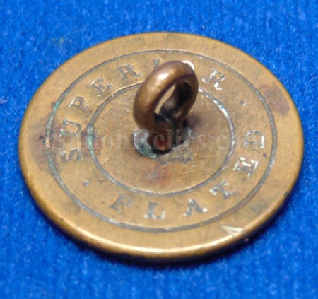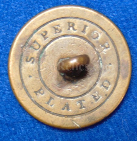 This is a pretty silvered 1 piece coat Size New York button. This one has the eagle perched on the front with the word "EXCELSIOR" around the bottom. The face of the button has a very nice amount of the original silver on the face as you can see. The back has the backmark that is nice and clear "SUPERIOR PLATED " between two rings around the shank. This is the pattern of button listed in Albert's button book as NY10 and in Tice's button book as NY100a21. The shank is present on the back as you can see. It is a beautiful non-excavated silvered 1 piece New York button.