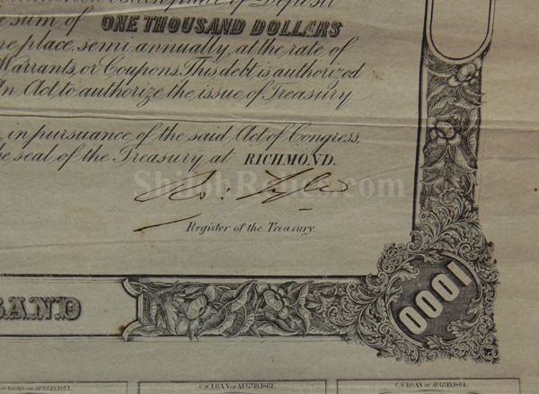 Nicely Priced Confederate 1862 $1,000 Bond with Secretary Memminger CR#102