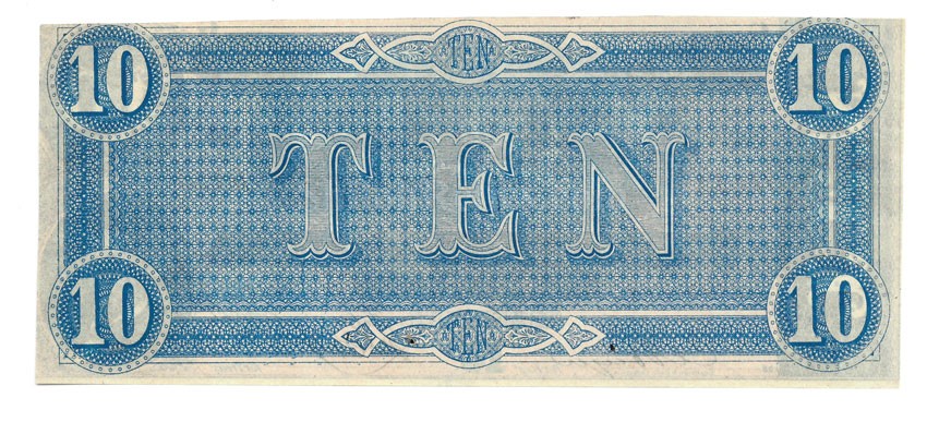 Great Looking 1864 C.S. $10 With Artillery Scene Almost Uncirculated