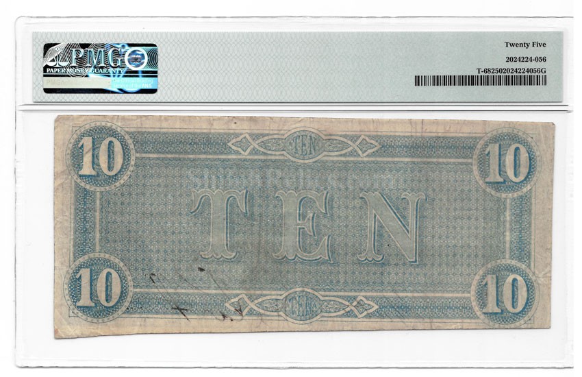 PMG Graded Confederate 1864 C.S. $10 With Artillery Scene T-68 Very Fine