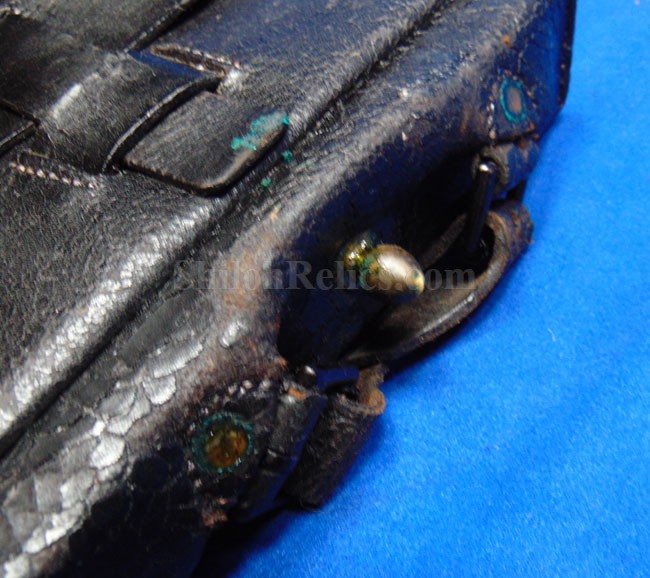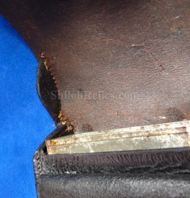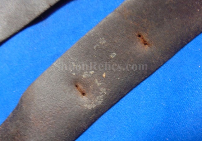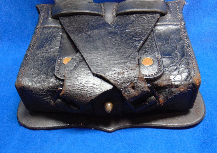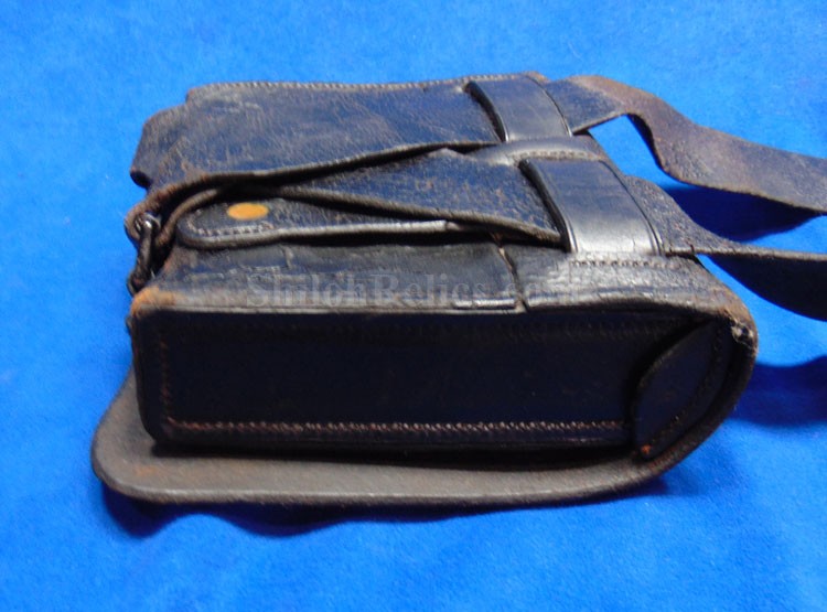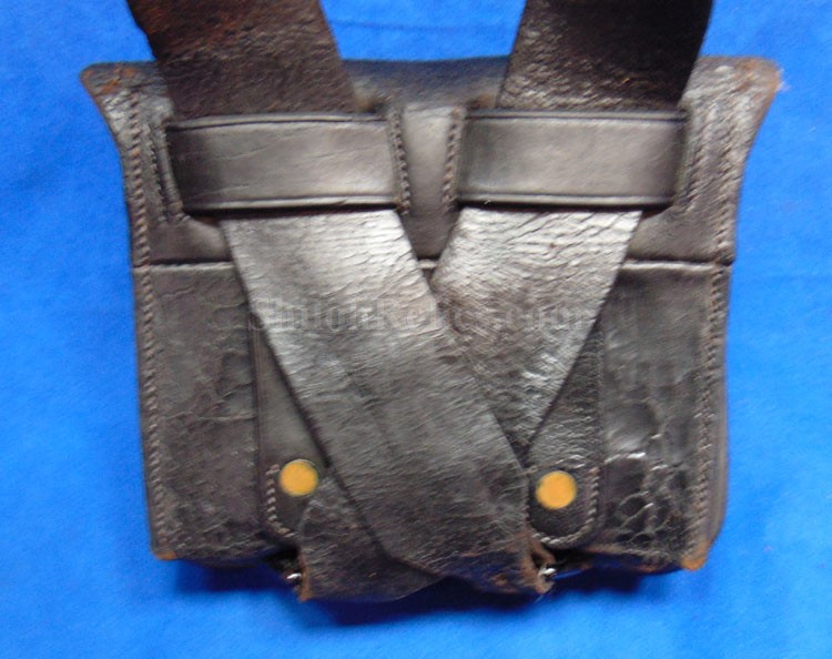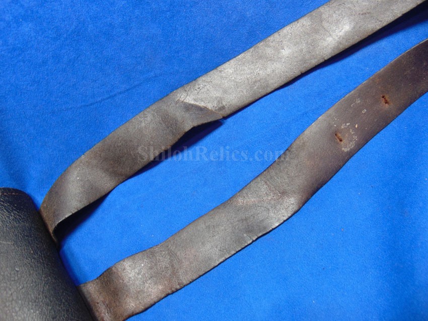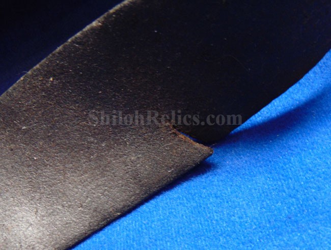This is a very nice piece! It is an original Civil War soldier's cartridge box. This is the classic .69 caliber style that was used during the Civil War. The outer flap still has the very nice original "US" cartridge box plate present with nice clear lettering. When you raise the outer flap you are greeted by the inner flap of the implement compartment. These Oliver boxes were made without the standard inner flap and since they didn't use the inner flap they would sew the "ears" directly onto the outer flap. The "ears" are missing from this one. The inner flap has the remnants of the Civil War maker mark of H.W. Oliver from Pittsburg, Pennsylvania. According to the maker book Oliver only had army contracts for cartridge boxes in 1863 and 1864. That lets us know that this one is definitely a Civil War production cartridge box. These model 1864 .69 caliber boxes were often issued to the western theater soldiers that were suing the outdated smoothbore rifles and muskets. The innermost compartment has the original tins intact with a fine look. On the bottom of the box it has both of the original roller buckle as well as the finial and the closure tab. The box has the original leather shoulder sling intact. These were issued without an eagle breastplate but you can see the slits on this one where it was cut for a plate at one time. There are couple of tears int he leather of the sling but as you see, it displays quite well. This is a fine displaying set that will look great beside your Civil War .69 caliber musket or rifle.