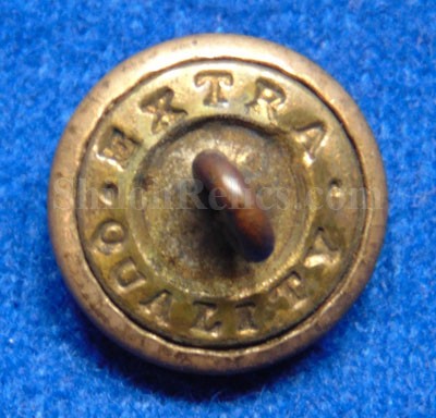 This is a fine original classic Civil War cuff size cavalry uniform button. This is the style with the eagle on the front of the button. The eagle has the shield on her chest with the letter "C" which denotes the cavalry branch of service. The button has the original back and shank intact with the correct Civil War backmark of "*EXTRA* QUALITY". It has the face with fine detail. This is a very attractive Civil War cuff size non-excavated cavalry eagle "C" button.