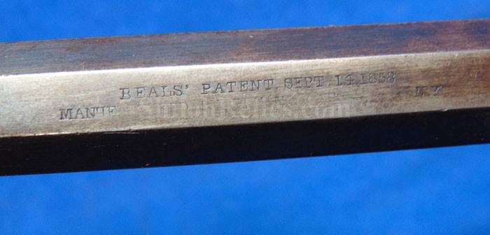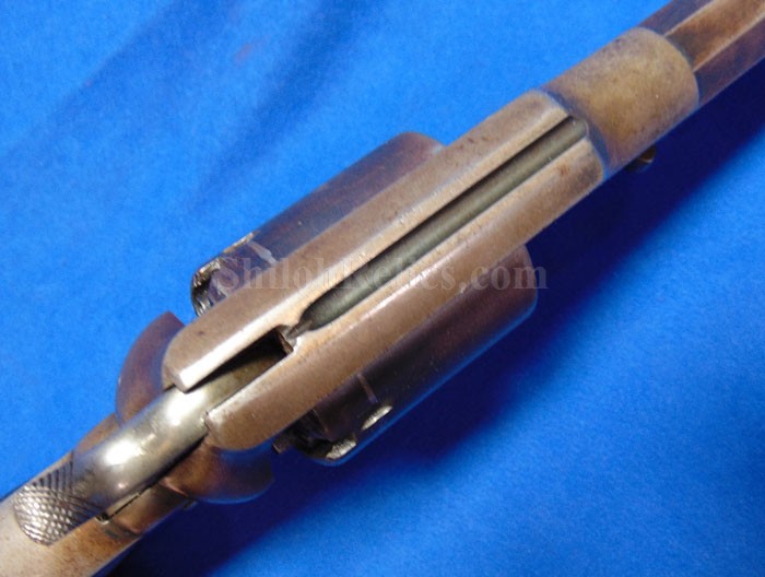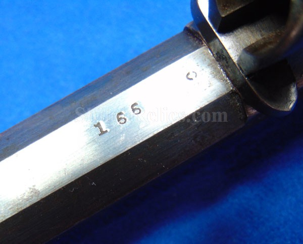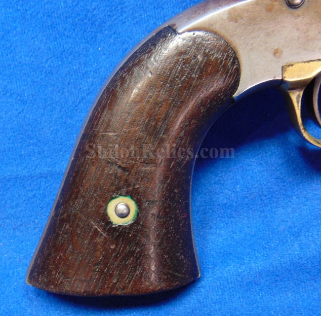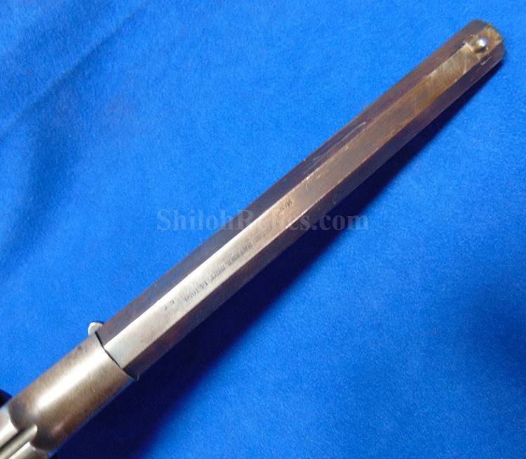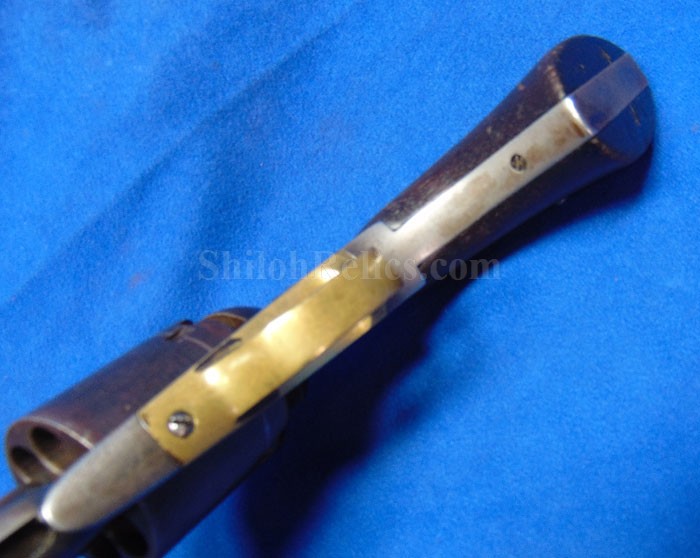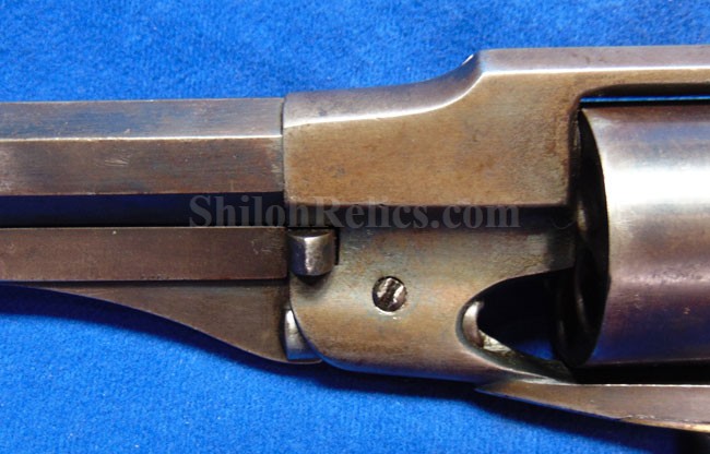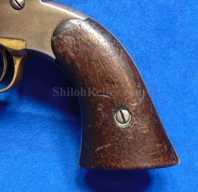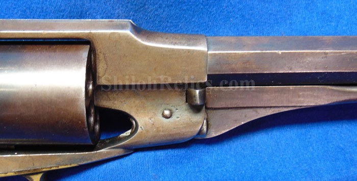 Here is a quite scarce version of the famous Civil War Remington .44 caliber revolver. This is the earlier production that is known to collectors as the Remington Beals model. According to Flayderman these guns were manufactured in 1861 and 1862. He states that they only made 1,900 in total production with 50%-80% being acquired by the US Government for Civil War military service. . The gun has an attractive dark color with some of the original bluing holding on. Across the top of the barrel it has the Remington manufacturing Mark as well as the Ilion, New York production location. Above this stamping, it reads "BEALS' PATENT SEPT. 14 1858." The gun has all matching serial numbers of 166. That's right! This is the 166th gun they produced in this model. It is one of the lowest serial number that we have encountered on one of these guns. On the grip of the gun it has the original 2 piece Walnut wood grips intact with a very pleasing appearance with honest wear as you see. The mechanics of the gun still function quite well. This is a very attractive gun and is one of the rare early production Civil War Remington .44 caliber Army model revolver.