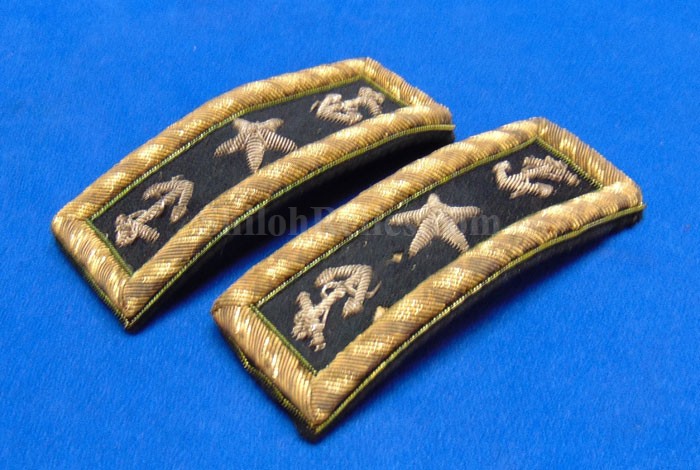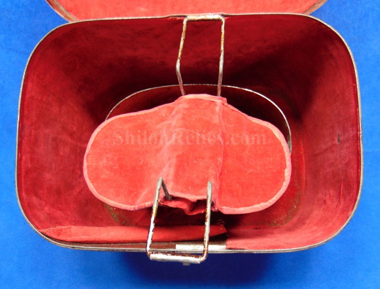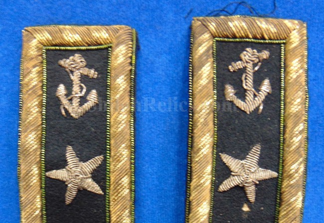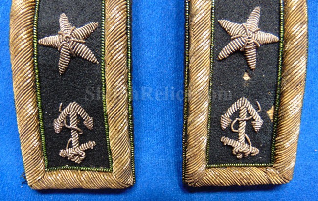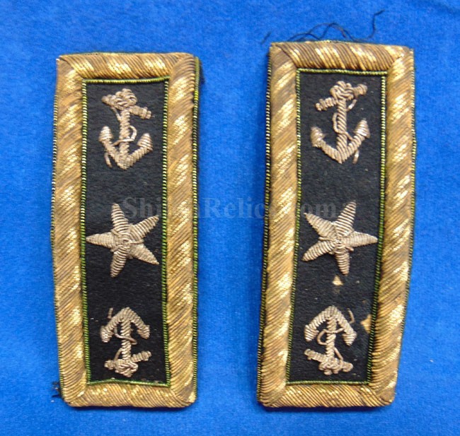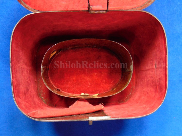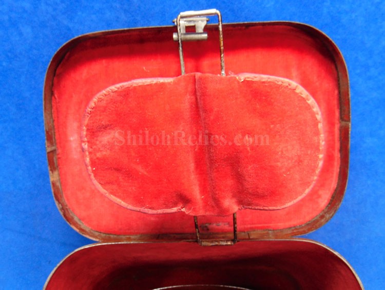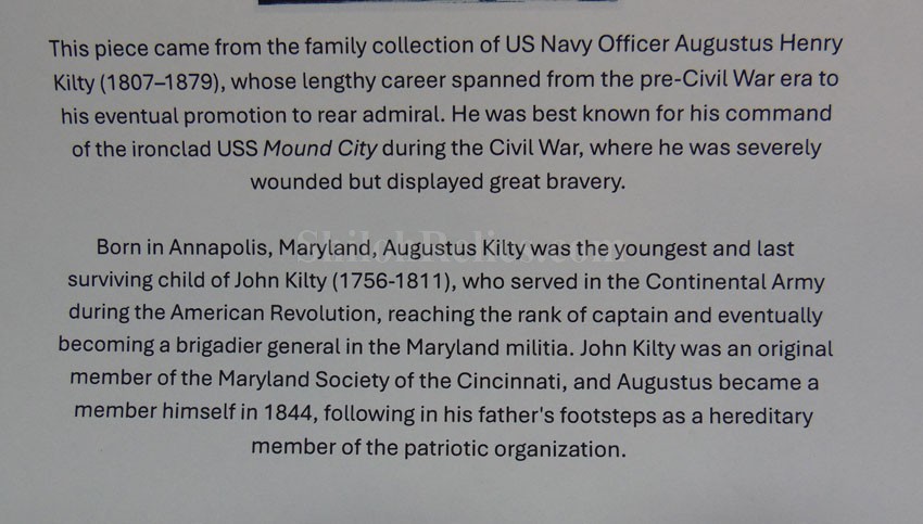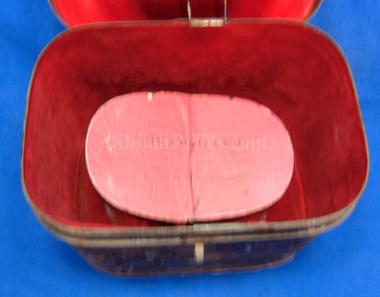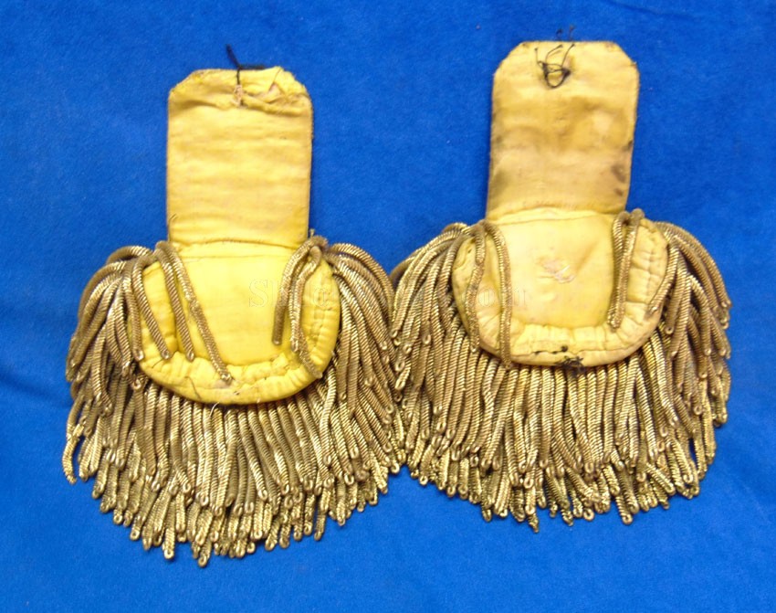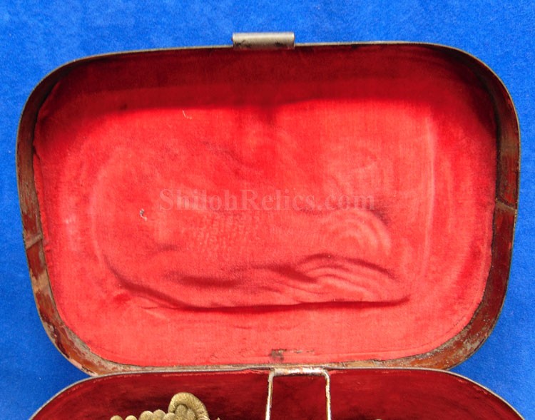 Here are a group of pieces from the estate of a long serving sailor from the United States. These items came from the estate of Augustus Kilty. Augustus Henry Kilty (1807–1879), whose lengthy career spanned from the pre-Civil War era to his eventual promotion to rear admiral. He was best known for his command of the ironclad USS Mound City during the Civil War, where he was severely wounded but displayed great bravery. Born in Annapolis, Maryland, Augustus Kilty was the youngest and last surviving child of John Kilty (1756-1811), who served in the Continental Army during the American Revolution, reaching the rank of captain and eventually becoming a brigadier general in the Maryland militia. John Kilty was an original member of the Maryland Society of the Cincinnati, and Augustus became a member himself in 1844, following in his father's footsteps as a hereditary member of the patriotic organization. In 1821, at age 13, Kilty was appointed midshipman, though he did not accept the commission until 1824. Over the next few decades, he gained experience serving in multiple theaters, including the Pacific, Asiatic, Mediterranean, and African waters. In 1832, he was involved in operations with Commodore George Reid to defend American merchant ships at Quallah Batto, Sumatra. He was promoted to lieutenant in 1837 and served on frigates in the Mediterranean Squadron before being placed on the Reserve List in 1855, just before the Civil War. During the Civil War, Kilty was recalled to active duty and given command of the ironclad gunboat USS Mound City in the Mississippi Flotilla. He saw action at the Battle of Island Number Ten and the capture of Fort Pillow. In June 1862, Kilty commanded a flotilla during an expedition up the White River in Arkansas. At the Engagement at St. Charles, a Confederate shell penetrated the Mound City's casemate, causing a steam explosion that killed most of his crew. Kilty himself was severely wounded, losing his left arm. After recovering, he commanded the ironclad frigate USS Roanoke. He was promoted to commodore in 1866 and served as the Commandant of the Norfolk Navy Yard before being placed on the Retired List in 1868. He was promoted to rear admiral on the retired list in 1870. After his retirement he moved to Washington where he remained for a few years, but soon returned to Baltimore where he died on 10 November 1879.This group comes with a cased set of officer's epaulets. The set is for a lower ranking officer because they do not have the insignia on the center of the golden color top. Each has a nice used appearance with the bullion fringe and the golden silk undersides. They come displayed in the original Jappanned black tin carrying case. the case retains some of the original paint on the sides. When you open the case you see the red lining and the innermost compartment is covered with the 1854 dated paper label. When I took the lid off of the innermost compartment, I found Kilty's original pair of shoulder insignia. These insignia have the distinct design of being made for a U.S. Navy Rear Admiral with the star in the center and flanked by the anchors. These are not as old as the epaulets and would have been his during the time he held the rank of Read Admiral which would have been 1870 until 1879. There was also a vest size Civil War era navy button made by Horstmann & Allien. You get the cased epaulets, the shoulder insignia and the button for $995.00.