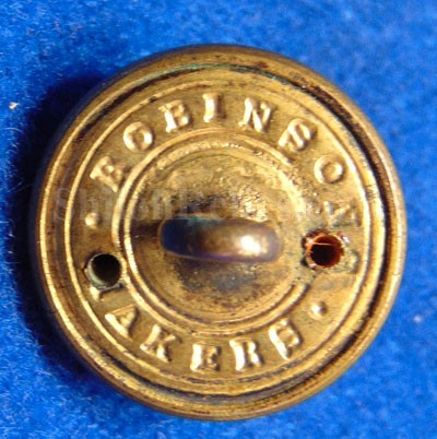 This is a beautiful non-excavated cuff size Rhode Island state seal staff officer button. This one has the state seal of the great state of Rhode Island on the face of the three piece button. The anchor is in the center with the wording "HOPE" across the top. It has a fine amount of the original gold remaining in down in the recesses to make the designs stand out. The original back and shank are intact and it has the correct Civil War backmark of "ROBINSON. MAKERS*" . There are two tiny holes on the back of the button that are mentioned for exactness. This is the style listed as RI7av in Albert's button book and RI201AS2 in Tice's button book. This is a superb non-dug original Civil War Rhode Island Uniform button.'